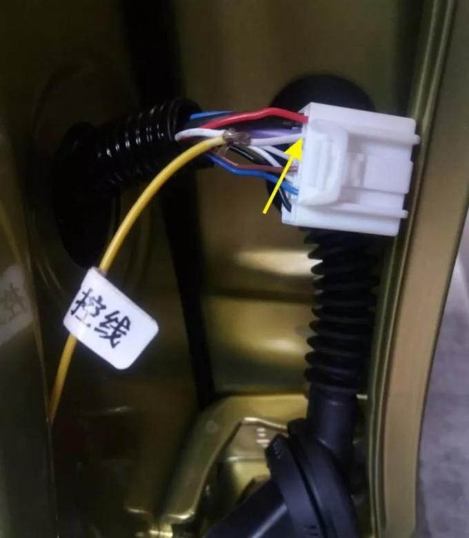 12.Beyaz hattını (ikinci deliğin ilk satırı sağdan sola) bağlamak için orijinal araba soketini, şirketimizin sarı kontrol hattını fişe takın.