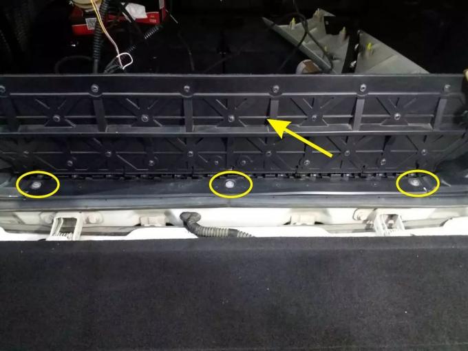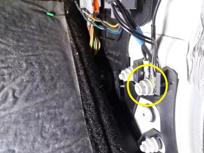 11. Bu üç yerin metal vidalarını sökün , Döşeme paneli , Kilitlenmemiş hat ve hat yerinde su geçirmez lastik tıpadan geçerek yarım kapı kontrol kutusuna gidin.